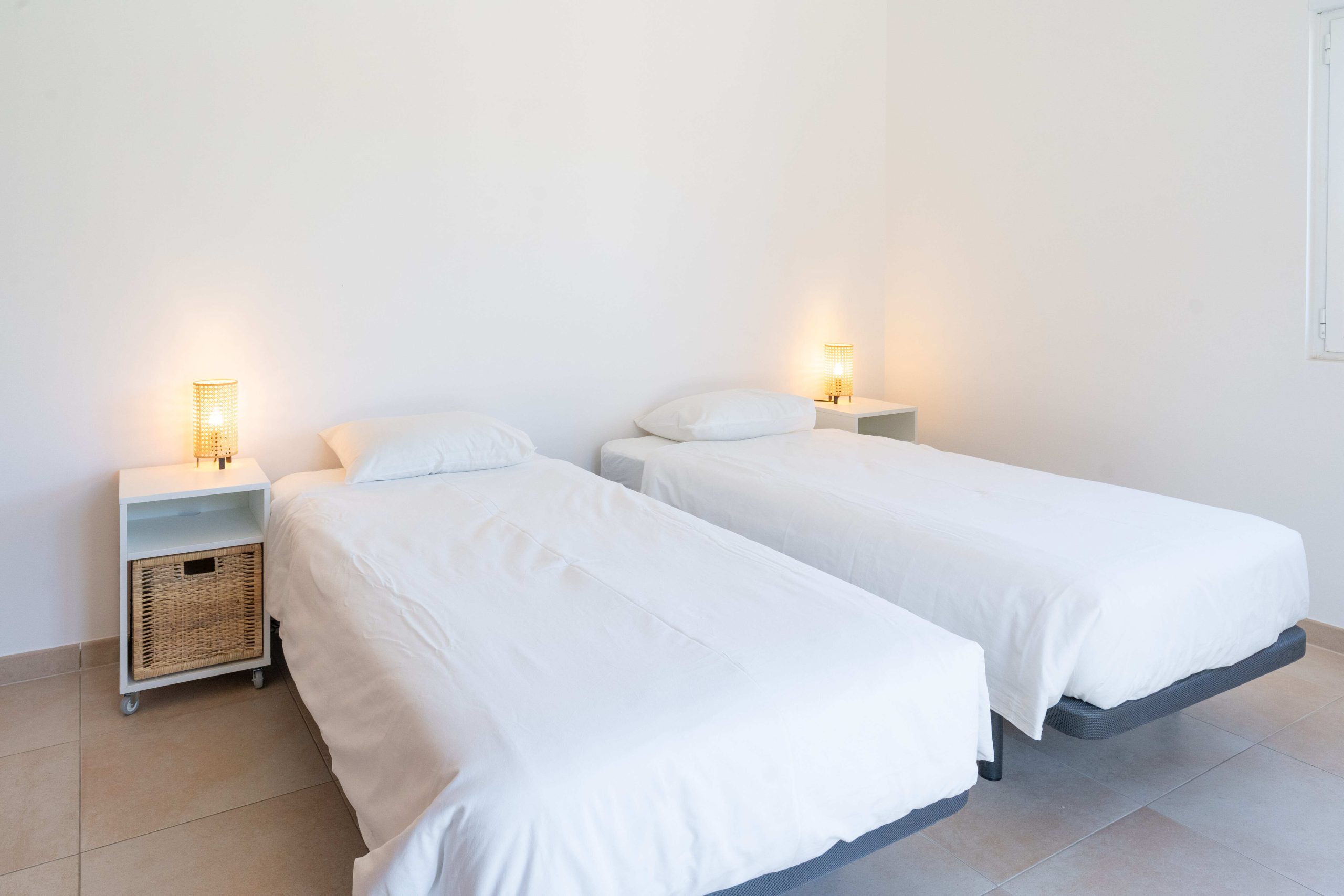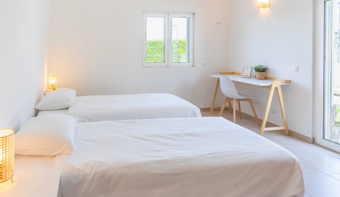 Our cozy twin room comes with two single beds, terrace and a shared bathroom outside the room.